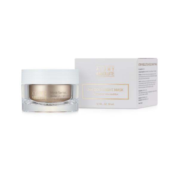 Атоми Абсолют Ночная маска 24к золото — премиальная ночная маска с частицами 24-каратного золота. Золото стимулирует микроциркуляцию и клеточное обновление. Маска работает всю ночь, питая, подтягивая и восстанавливая кожу.