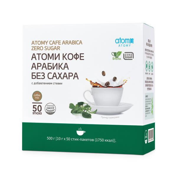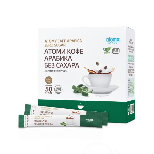 Атоми Кофе Арабика без сахара — растворимый кофе из зёрен арабики с растительными сливками, подслащённый экстрактом стевии вместо сахара. Идеальный выбор для тех, кто следит за потреблением сахара, но не хочет отказываться от сладкого кофе. Набор 50 стиков.
