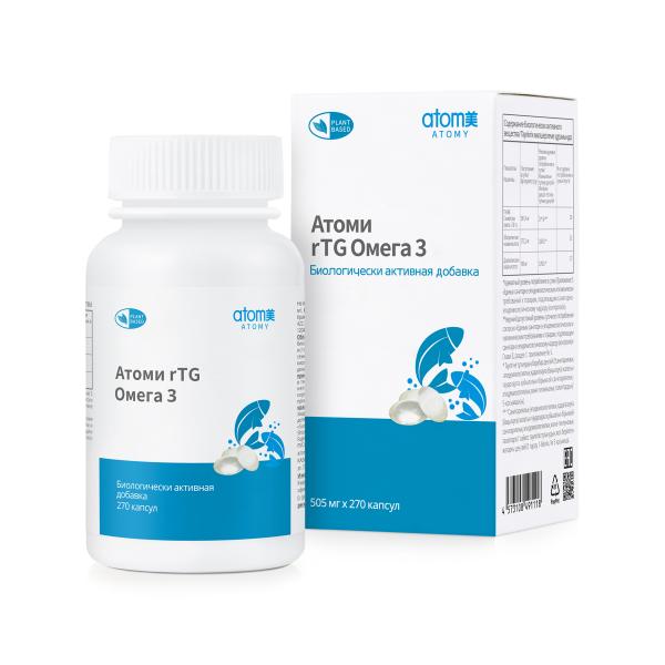 Атоми rTG Омега-3 содержит жирные кислоты EPA и DHA в форме реэтерифицированных триглицеридов (rTG) — наиболее биодоступной форме омега-3. По сравнению с обычным рыбьим жиром, rTG-форма усваивается на 70% лучше. Поддерживает здоровье сердца, сосудов, мозга и суставов.