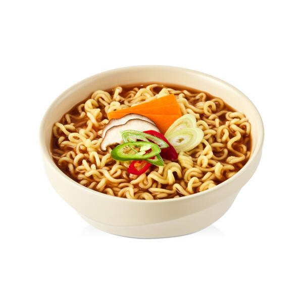 Атоми Вегетарианская Лапша — корейская лапша быстрого приготовления на овощном бульоне. Полностью вегетарианский состав без мяса, рыбы и продуктов животного происхождения в бульоне. Мягкий вкус и упругая текстура лапши.