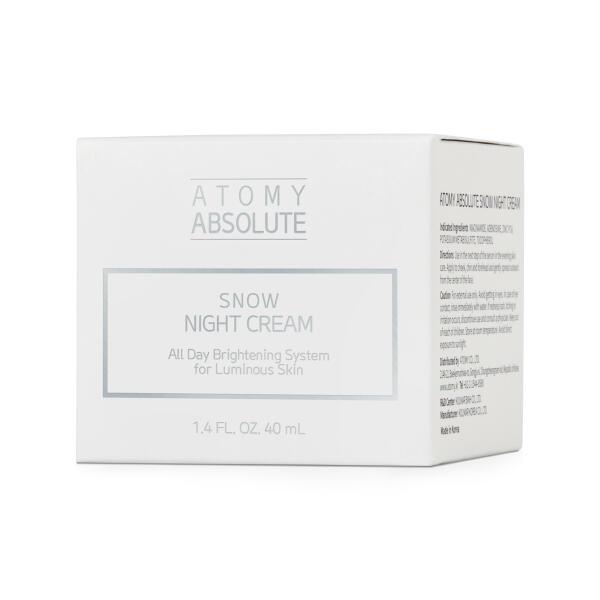 Атоми Абсолют Сноу Ночной крем — интенсивный осветляющий крем для ночного ухода. Работает, пока вы спите: ниацинамид осветляет пигментацию, гиалуроновая кислота увлажняет, а пептиды стимулируют обновление клеток.