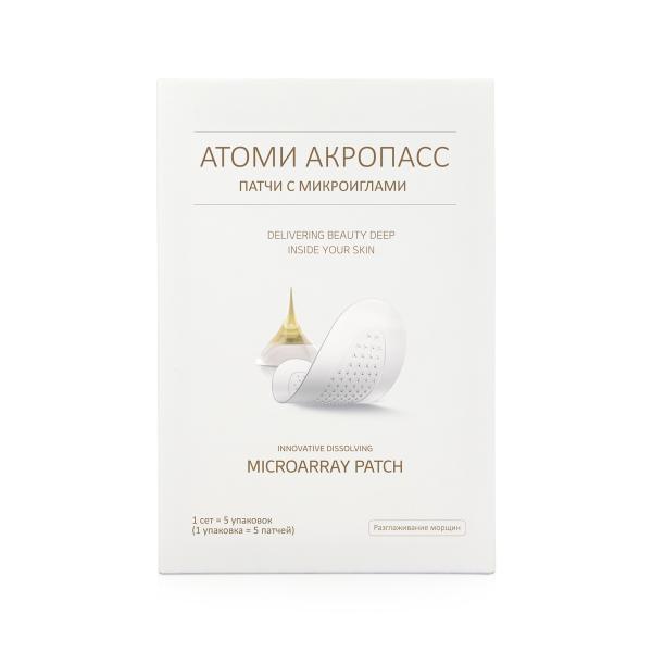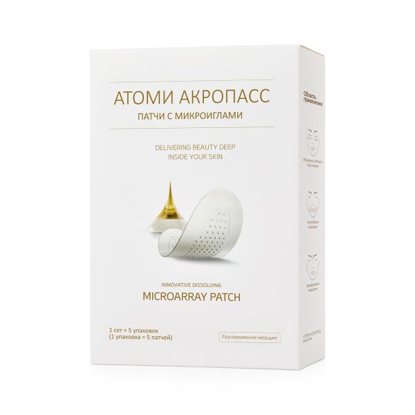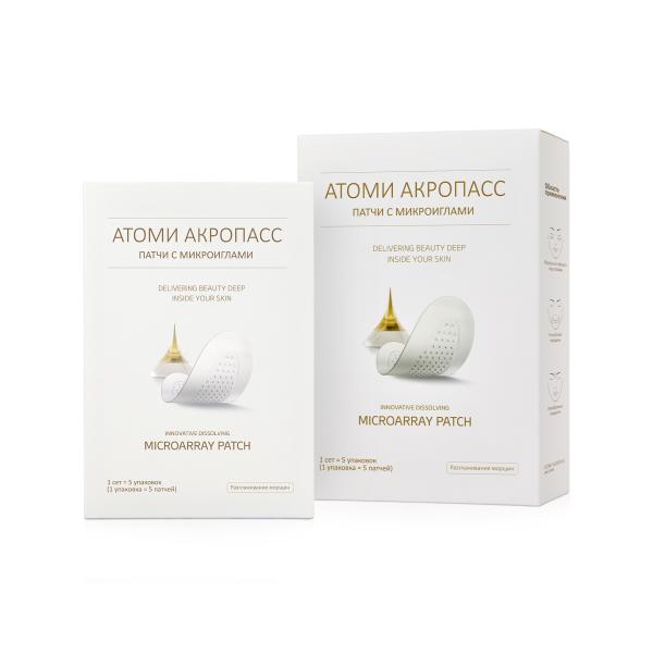 Атоми Акропасс — микроигольные патчи с растворяющимися микроиглами из гиалуроновой кислоты. Микроиглы безболезненно проникают в кожу и растворяются, доставляя гиалуроновую кислоту в глубокие слои. Видимый эффект заполнения морщин после одного применения. 5 упаковок.