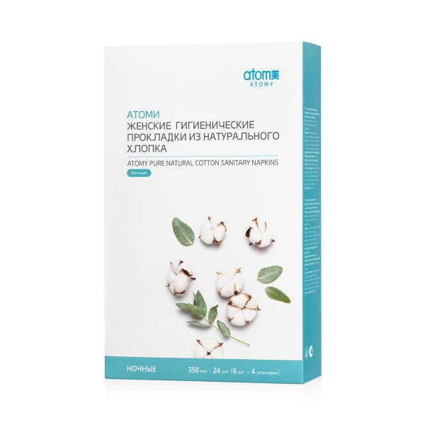Атоми Гигиенические прокладки (Ночные) — удлинённые прокладки для ночного использования из 100% натурального хлопка. Максимальная впитываемость и увеличенная длина обеспечивают защиту во время сна.