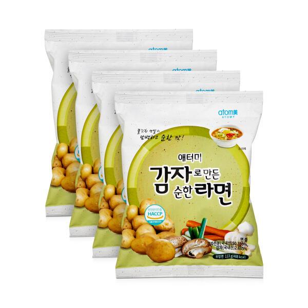 Атоми Картофельный рамен — корейская лапша быстрого приготовления, изготовленная на основе картофельного крахмала. Мягкий, неострый вкус бульона подходит для всей семьи, включая детей. Упругая текстура лапши сохраняется даже после варки. Набор из 4 порций.