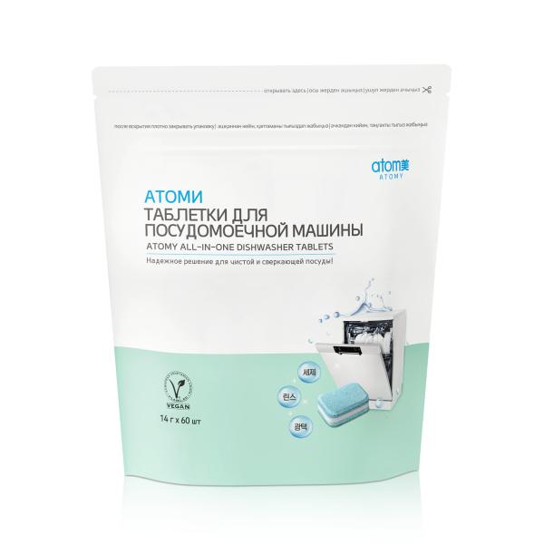 Атоми Таблетки для посудомоечной машины — средство «всё в одном»: моющее средство, ополаскиватель и соль для смягчения воды в одной таблетке. Эффективно удаляют жир и засохшие остатки пищи. Защищают стекло от помутнения.
