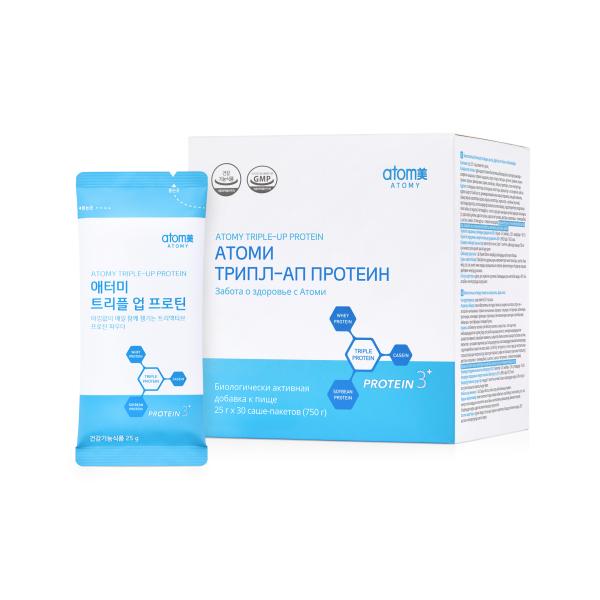 Атоми Трипл-ап Протеин — комплексная протеиновая добавка, содержащая три вида белка: соевый, сывороточный и коллагеновый. Помогает поддерживать мышечную массу, здоровье кожи и общий тонус организма. Удобная порционная упаковка в стиках с приятным вкусом.