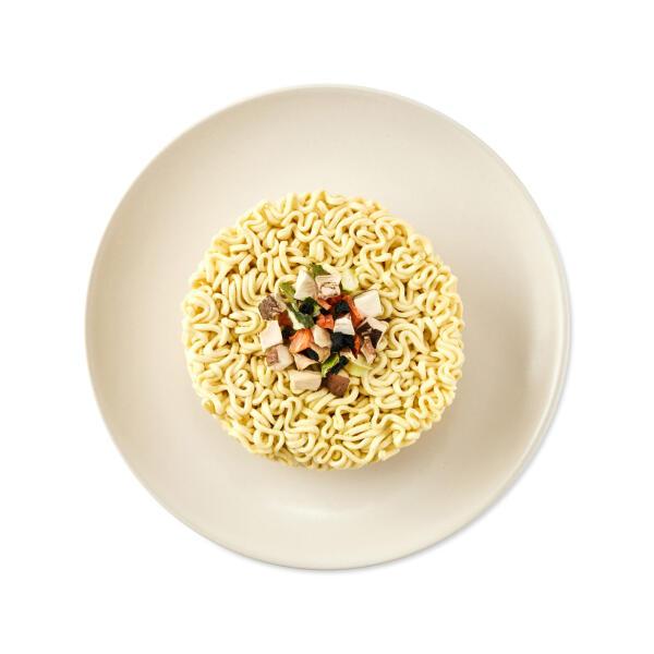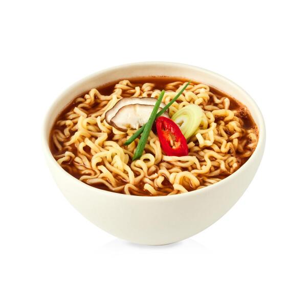 Атоми Вегетарианская Лапша в стакане — лапша быстрого приготовления на овощном бульоне, полностью вегетарианская. Удобный формат стакана — достаточно залить горячей водой. Идеально для быстрого перекуса в офисе или в дороге.